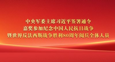 中央军委主席习近平签署通令 嘉奖参加纪念中国人民抗日战争暨世界反法西斯战争胜利80周年阅兵全体人员