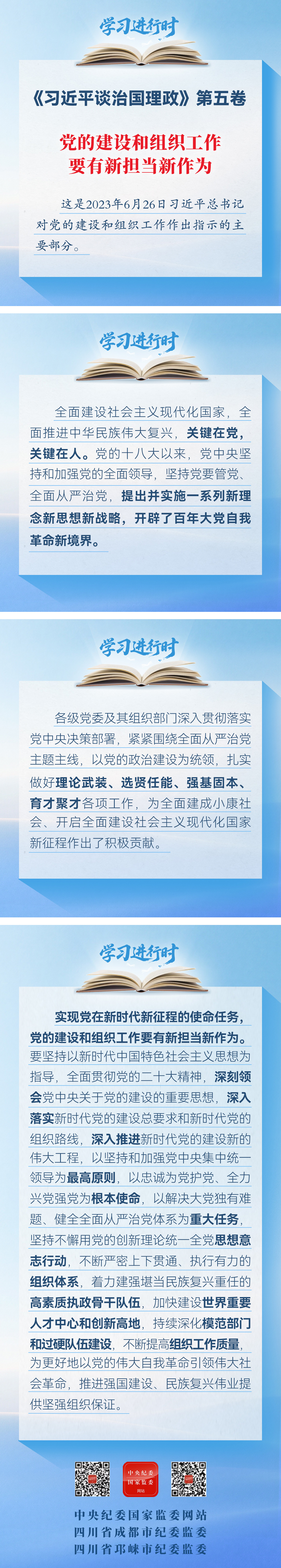 学习进行时丨党的建设和组织工作要有新担当新作为