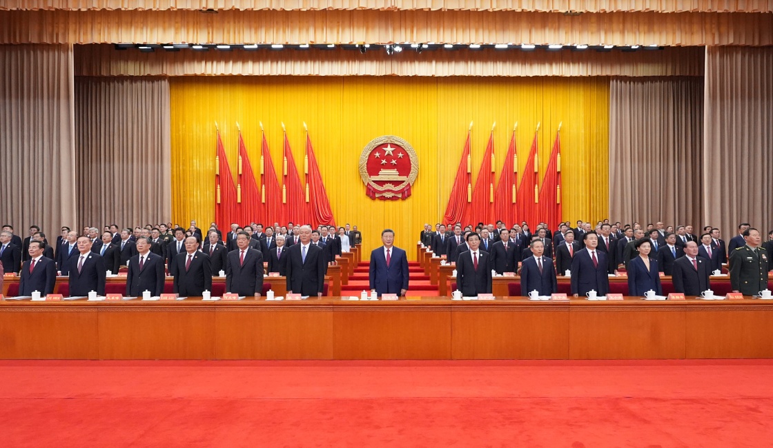 中共中央政治局委员、中央统战部部长、中央代表团副团长李干杰宣读中共中央、全国人大常委会、国务院、全国政协、中央军委关于庆祝新疆维吾尔自治区成立70周年的贺电。
