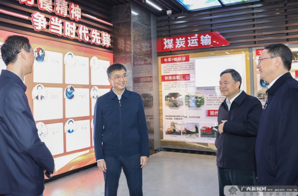 陈刚来到合山国家矿山公园博物馆,认真听取合山市资源型城市转型发展和产业升级、矿产资源整合、民生改善、生态修复、小县改革工作情况介绍,观看实物展品陈列、历史影像和数字化展示,详细了解合山煤矿发展历程,对合山市资源型城市转型发展和产业升级取得的成效给予充分肯定。他强调,要认真贯彻落实习近平生态文明思想和党中央、国务院关于资源型城市转型发展的部署要求,因地制宜调结构促转型,探索推动清洁能源与煤电互济发展,统筹解决好历史遗留问题,久久为功推进生态恢复,积极发展碳酸钙和石英砂新材料等新产业,努力走出资源型城市转型发展的新路子,确保各项工作经得起历史、实践和人民的检验。