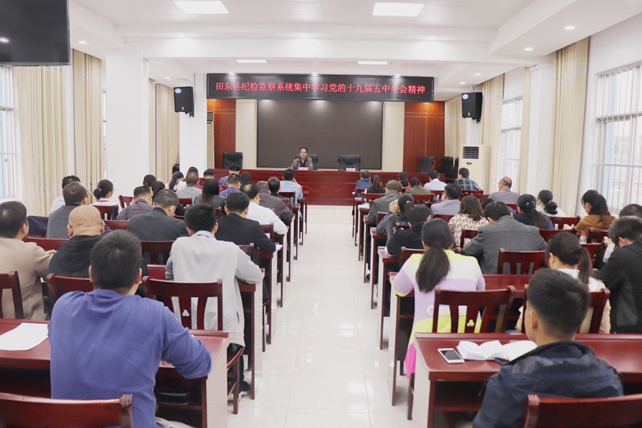 图为田东县纪检监察系统集中学习党的十九届五中全会精神