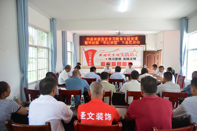 6月30日,市委常委、市纪委书记、市监委主任徐波到联系点田林县旧州镇那度村给党支部全体党员讲授专题党课。