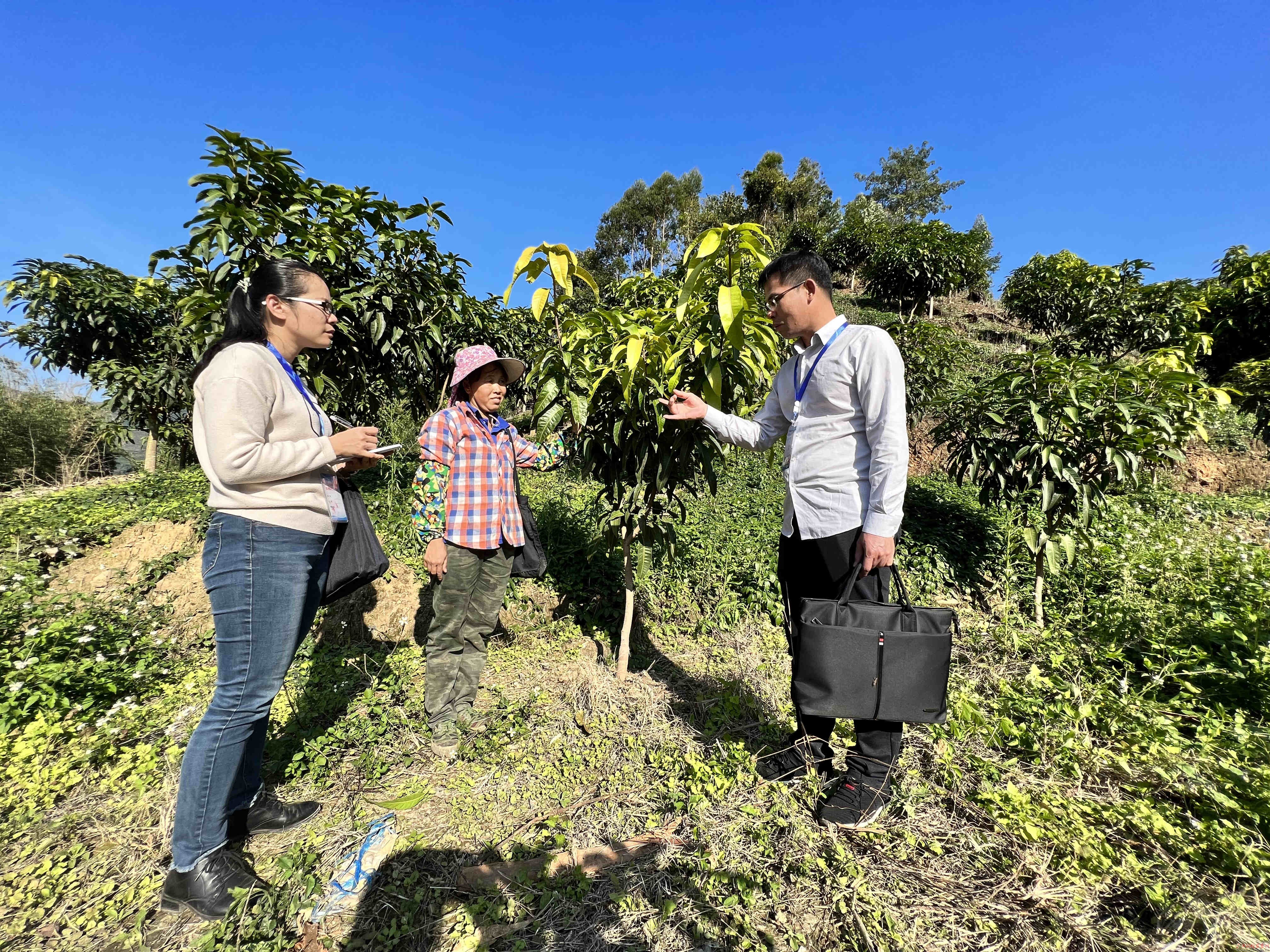 右江区纪委监委组织力量走访各乡镇(街道)种养殖大户,围绕乡村振兴、惠农助农等政策资金落实情况加强监督检查,助力实现农业高质高效、乡村宜居宜业、农民富裕富足。图为该区纪检监察干部深入田间地头走访芒果种植农户。(谭印艳/摄)