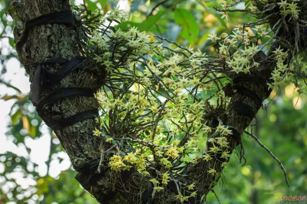 走进百色市西林县大银子铁皮石斛种销农民专业合作社,一棵棵“开花的树”映入眼帘,凑近仔细瞧,原来是一株株铁皮石斛生长在树干上。合作社相关负责人介绍,发展林下铁皮石斛产业既能解决附近村寨群众就业问题,又能提高经济收入,实现生态效益和经济效益共赢。