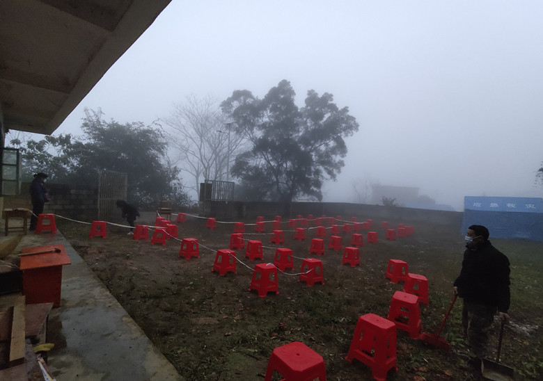 “昨晚,我们一起把闹钟调到清晨5点,互相监督对方按时起床开工。”正在协助足别瑶族苗族乡平木村渭季屯核酸检测点场地布置的黄美珍笑着说。此时,天还没有大亮,飘着绵绵细雨,一阵微风吹过,寒风刺骨,她哆嗦了一下,又继续布置场地。“天亮村民就会陆续过来,不提前划分好区域,很难做到‘一米线’间隔排队要求。”