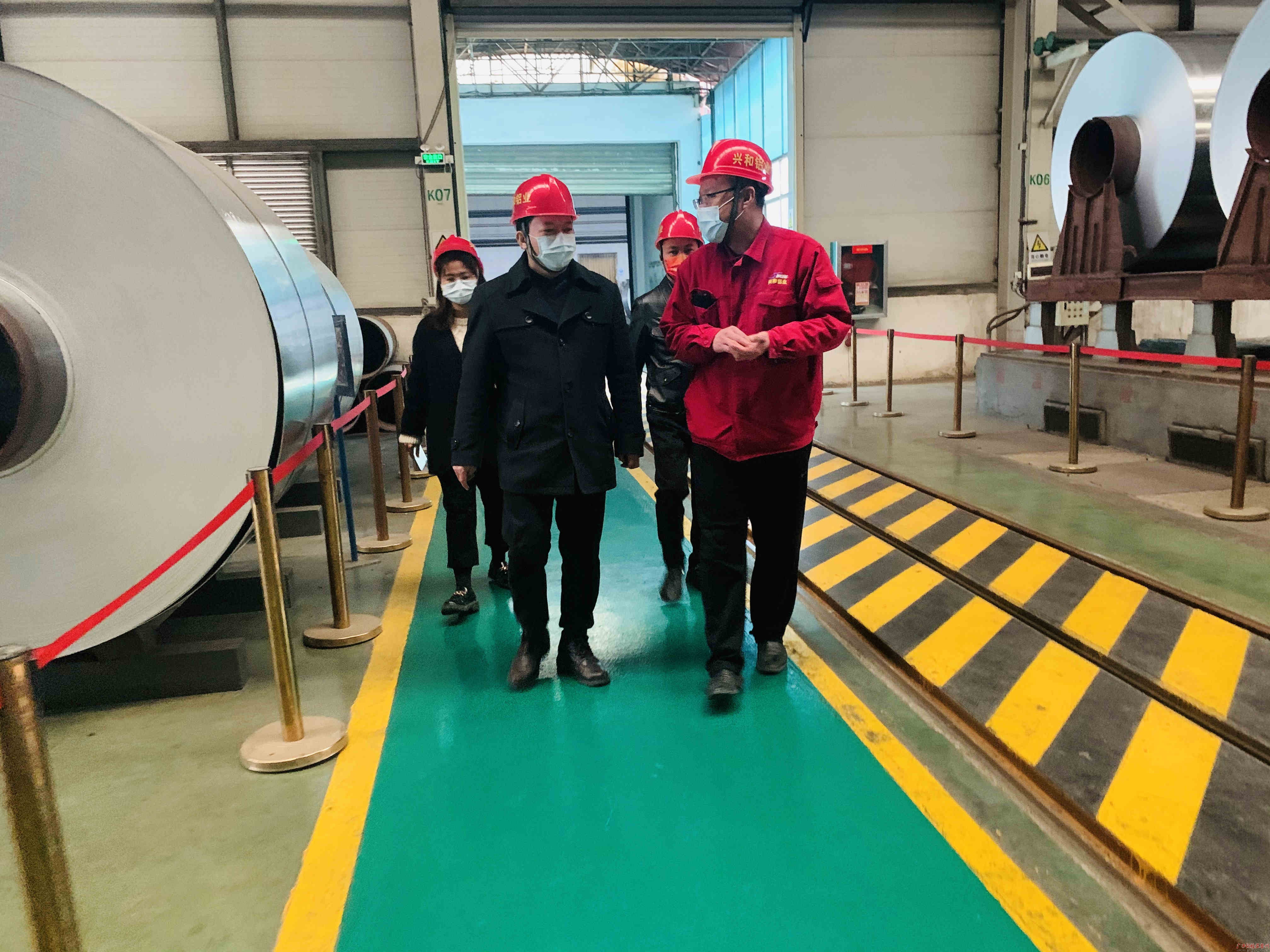 图为百色市纪委监委驻市工信局纪检监察组到兴和铝业公司督查复工复产情况,督促和指导企业用好用足复工复产政策和措施。