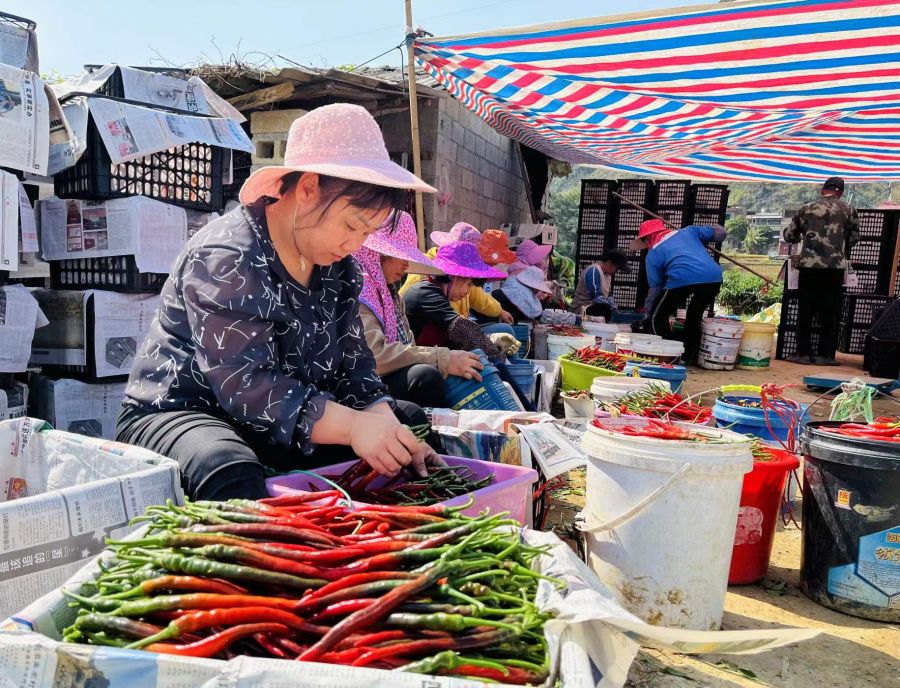 2月至3月底是辣椒的采摘期,每到这个时候田间地头就是一片繁忙的景象,红彤彤的辣椒鲜艳夺目。中午时分,工人们便陆续把新采摘的辣椒集中在临时搭建的棚子里进行分拣、装箱。