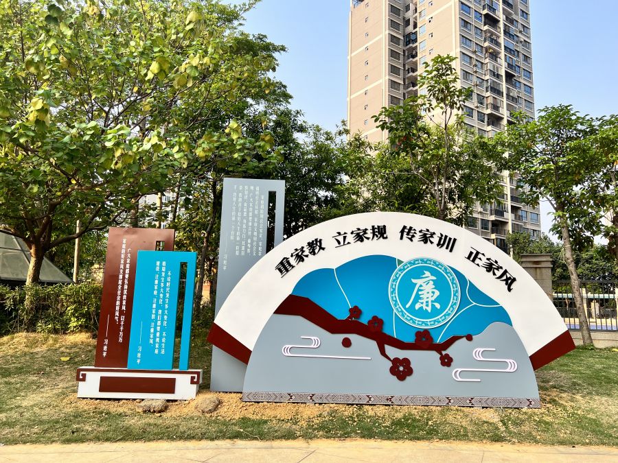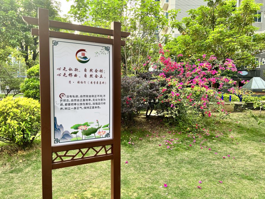 清廉文化牌树立在小区步道