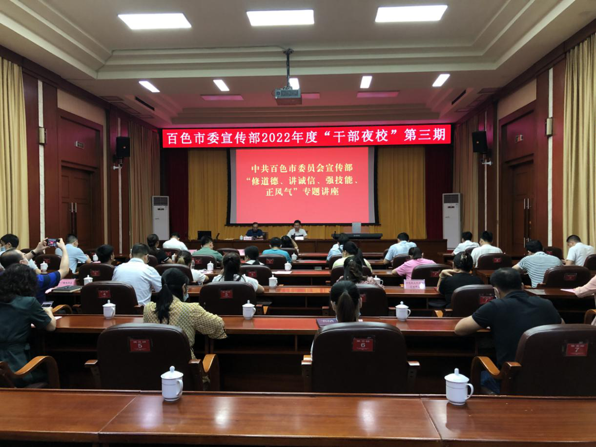 为切实增强我市宣传思想文化系统干部职工职业道德素养和诚信意识,引导广大党员干部职工把修道德、讲诚信转化为自觉行为,助推清廉洁机关建设、自治区级文明城市创建等工作。6月7日晚,市委宣传部在市委小礼堂举办“干部夜校”第三期暨“修道德、讲诚信、强技能、正风气”专题讲座,60余名党员干部职工参加。