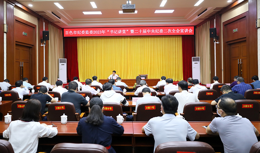 4月13日,市纪委监委举办2023年“书记讲堂”暨二十届中央纪委二次全会宣讲活动,市纪委副书记、监委副主任周俊为纪检监察干部授课,要求纪检监察干部要始终增强历史主动,坚定历史自信,时刻保持解决大党独有难题的清醒和坚定,始终在坚守初心、勇担使命上走在前、做表率,推动纪检监察工作高质量发展,为奋力谱写中国式现代化百色篇章提供坚强保障。