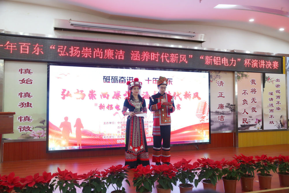 在喜迎百东新区(百色高新区)建区10周年之际,5月7日,百东新区(百色高新区)举行“砥砺奋进 十年百东 ‘弘扬崇尚廉洁 涵养时代新风’‘新铝电力’”杯主题演讲比赛决赛。