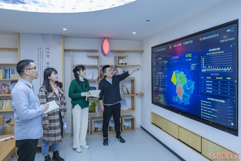 鹿寨县纪委监委将信息化监督融入乡村治理,收集整理村级小微权力清单、民生政策、村务财务公开信息录入“微权力e廉线”监督平台,引导群众共同参与监督,定期开展数据分析研判,及时处置问题线索,不断提升乡村治理效能。图为该县纪检监察干部利用监督平台分析研判信访举报问题线索。(鹿寨县纪委监委 覃智锋/摄)